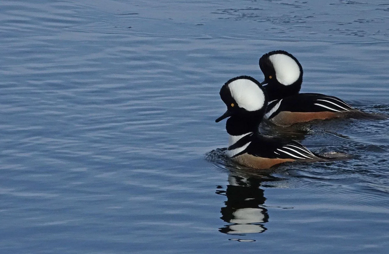 Displaying male Hooded Mergansers. Photo by Stephen Jones.