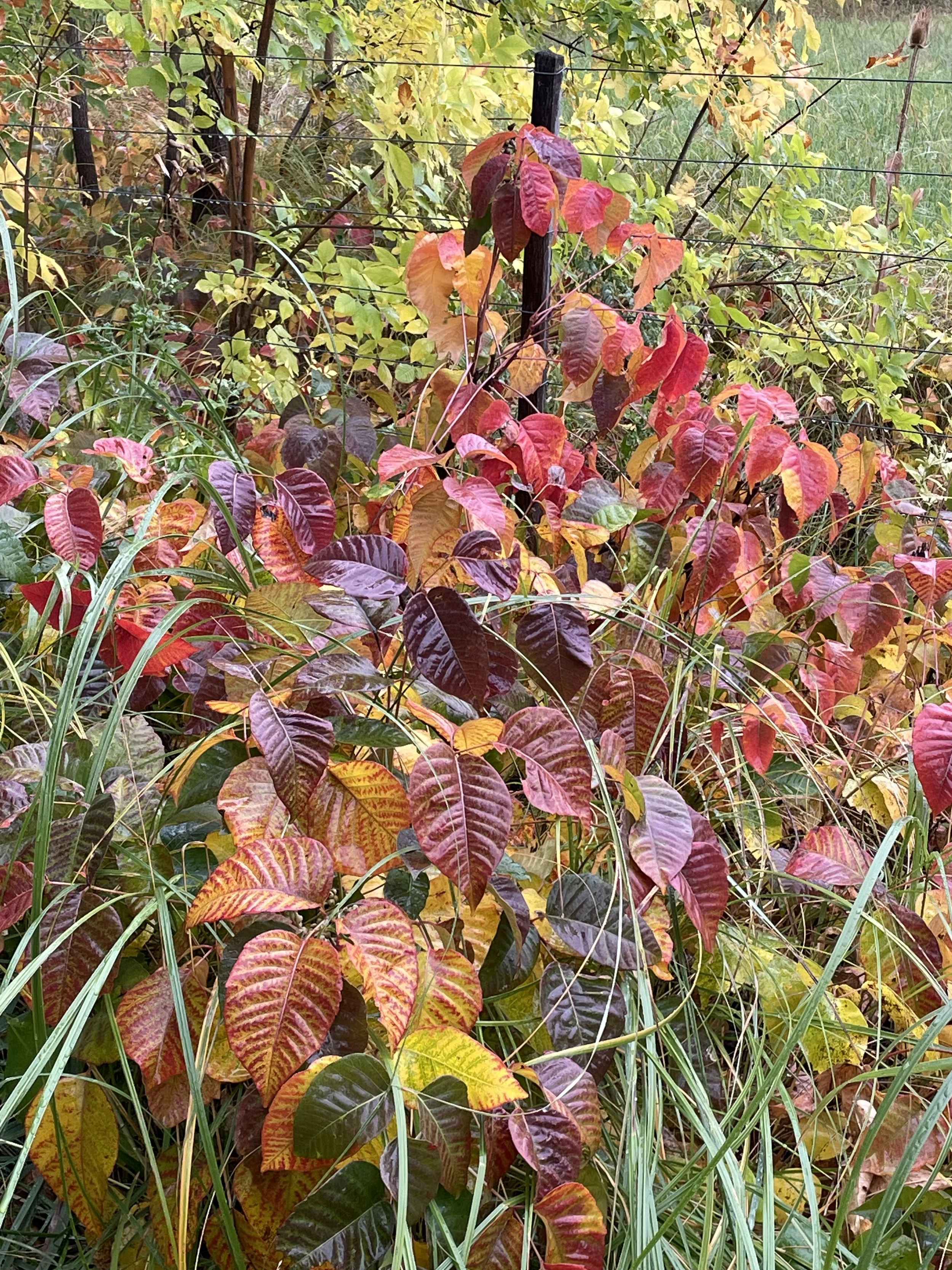 Poison ivy turns wine red, cherry red, and lemon yellow. Photo by Kit Basom.