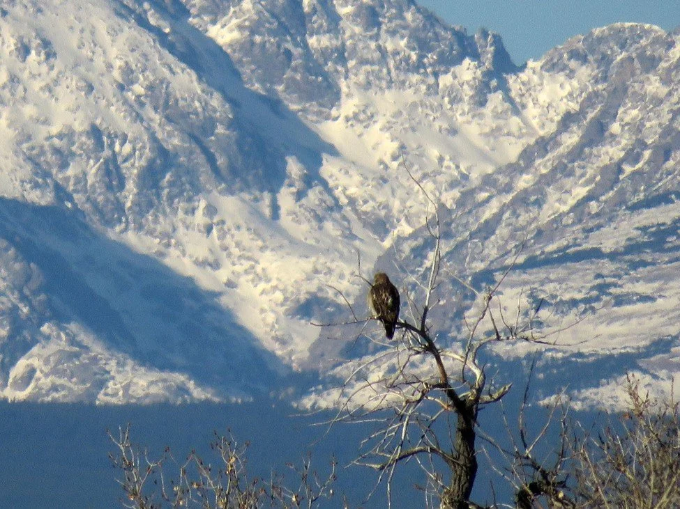 Red-tailed Hawk in front of South Arapahoe Peak. Photo by Raelen Smidgall.